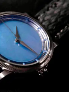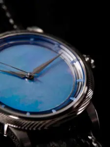 | Dial: | Hand-forged Damascus steel with guilloché pattern, blue tonal hues |