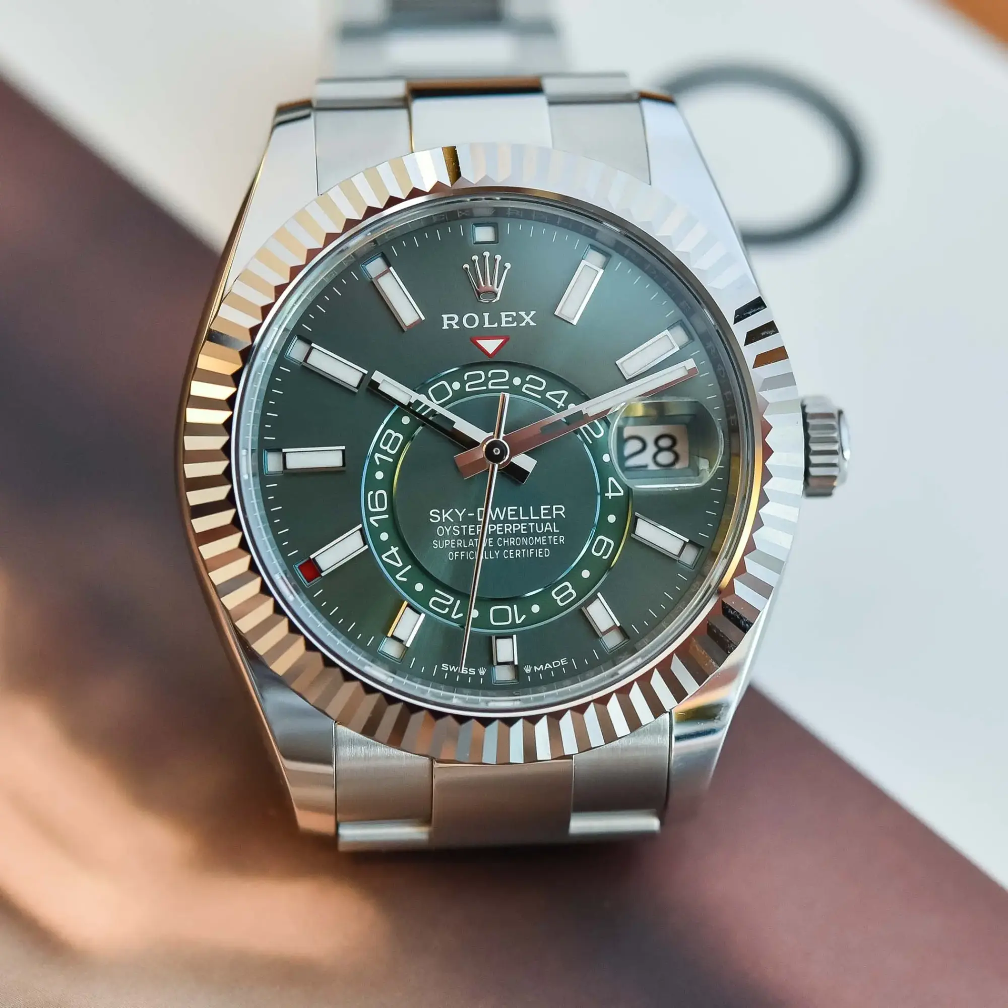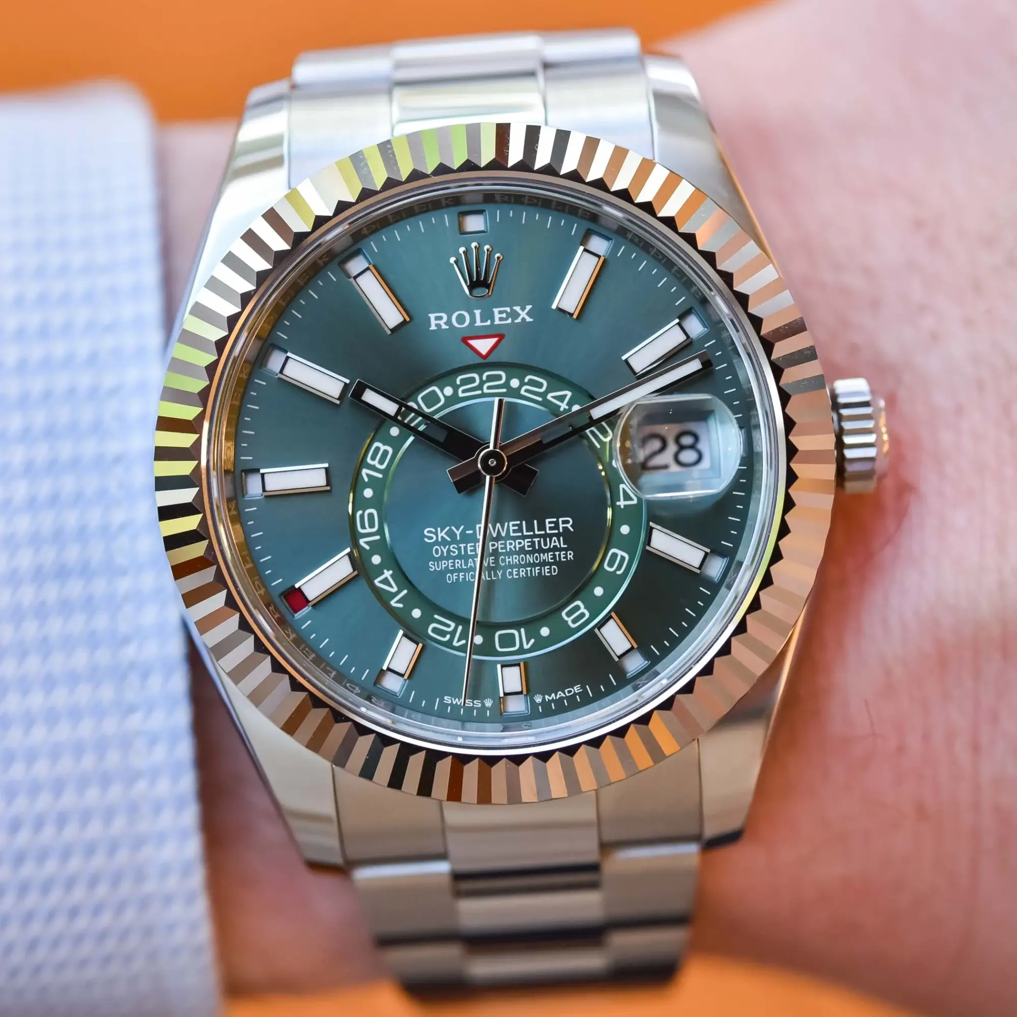 Bright, complex, and unmistakably modern — the Rolex Sky-Dweller with mint green dial is one of the most sought-after contemporary Rolex configurations.
