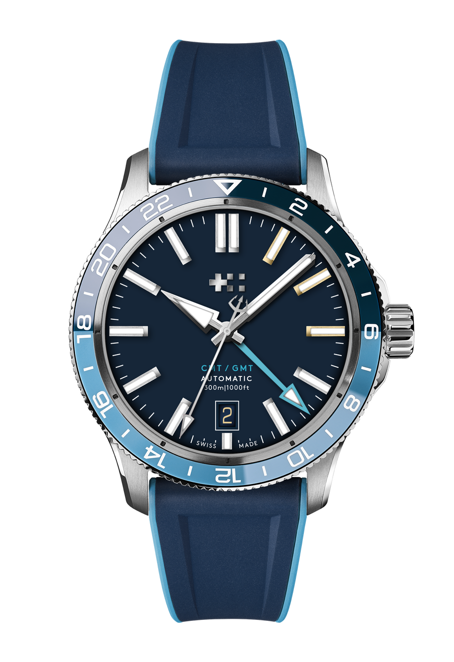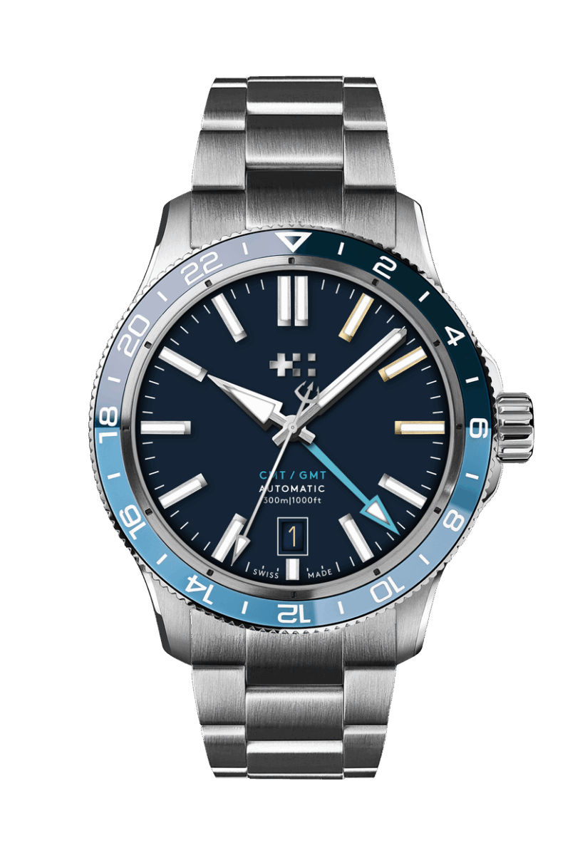 With CMT functionality the watch simultaneously tracks 3 separate time zones – particularly useful when travelling / following city (City Mean Time).